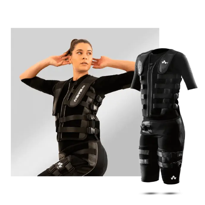 Nous travaillons avec les combinaisons sans fil WIEMS PRO. Elles se composent d’un sous-vêtement technique en fibre de bambou et de la combinaison en elle-même contenant les électrodes..